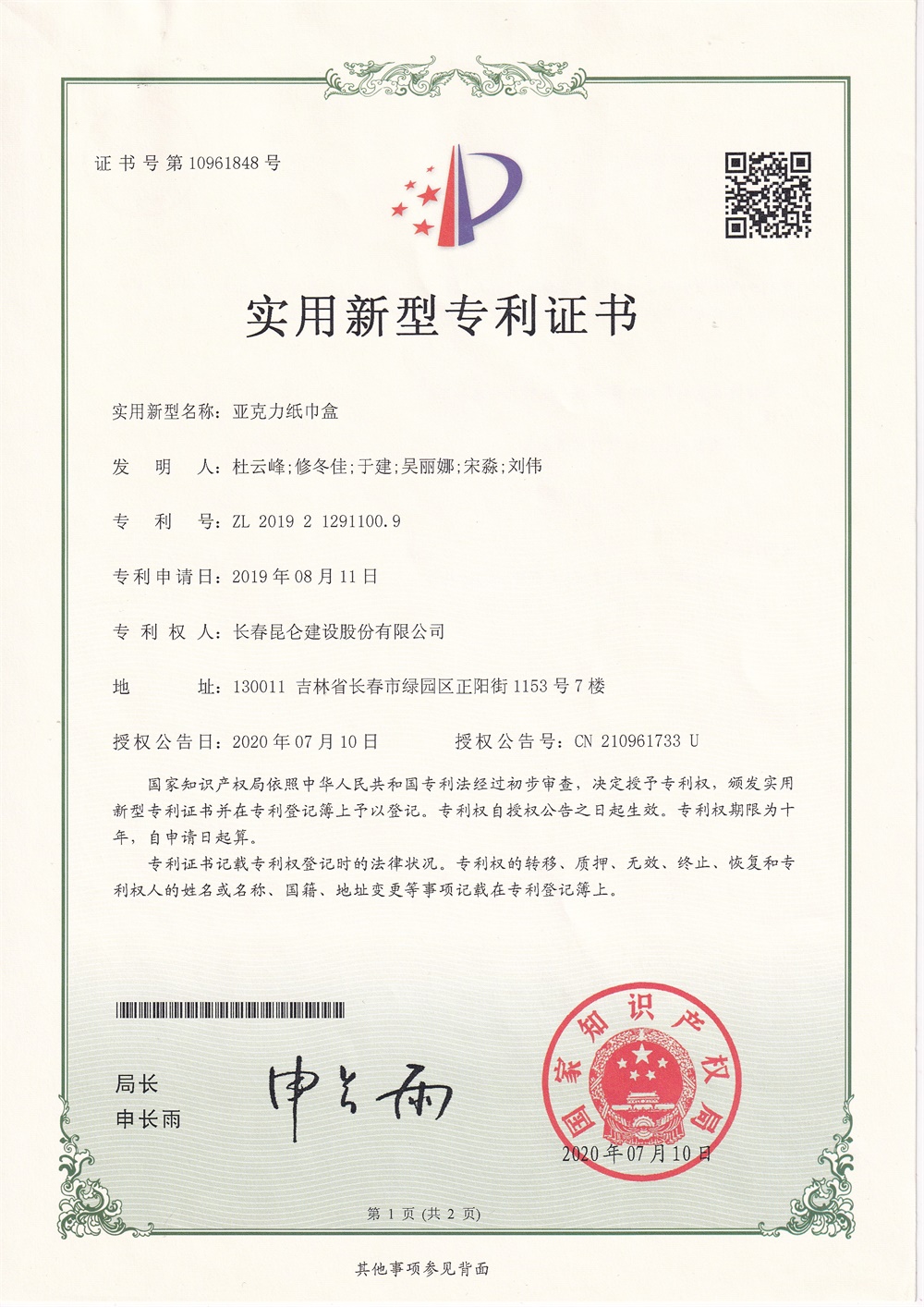 專利證書